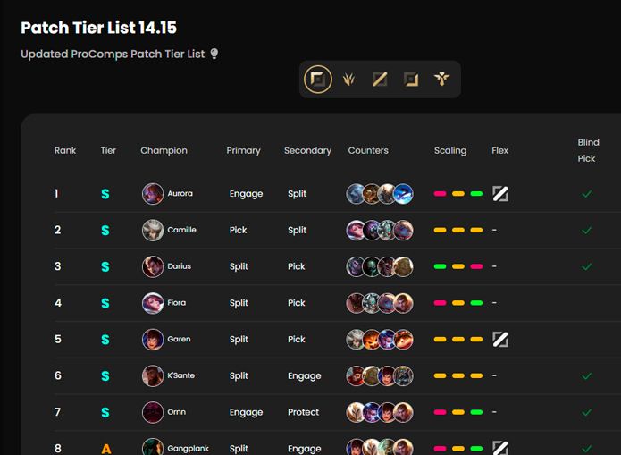 Our expert Ryan leads the analysis of the meta and creates the ProComps tier list every patch to support your drafts.